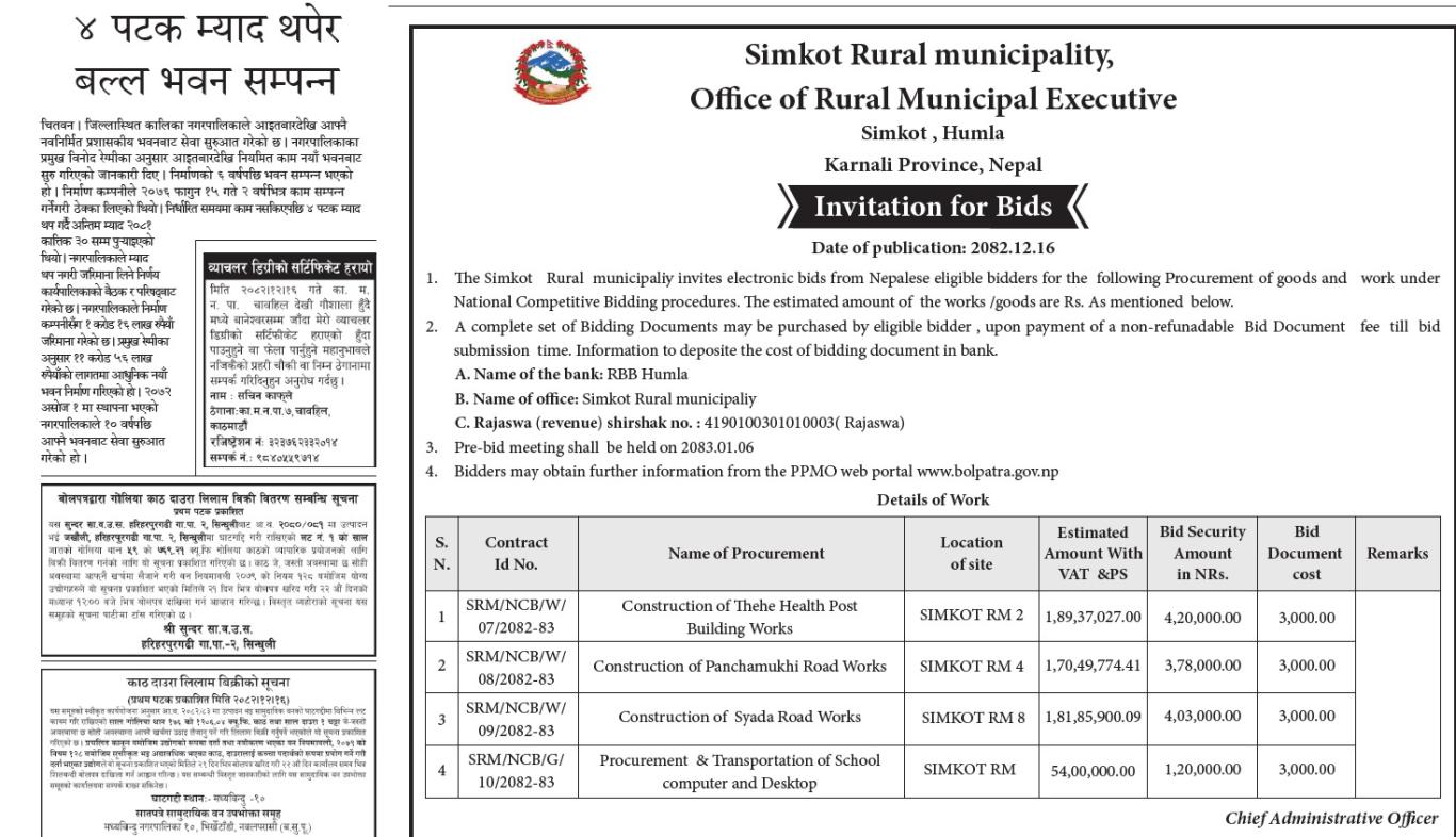 सार्वजनिक खरिद बोलपत्र सम्बन्धी सूचना l