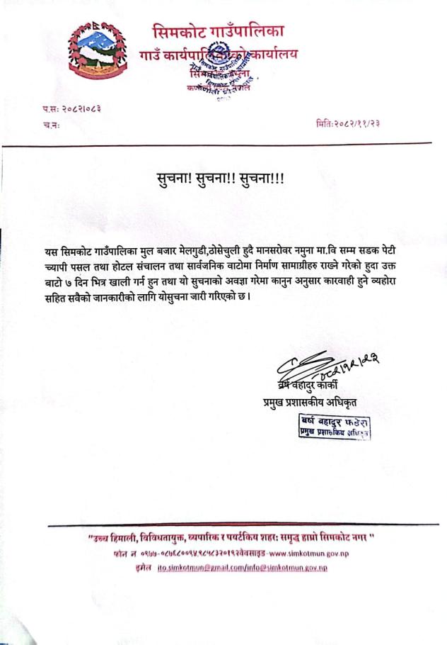 "उच्च हिमाली, विविधतायुक्त, व्यापारिक र पर्यटकिय शहर : समृद्ध हाम्रो सिमकोट नगर"